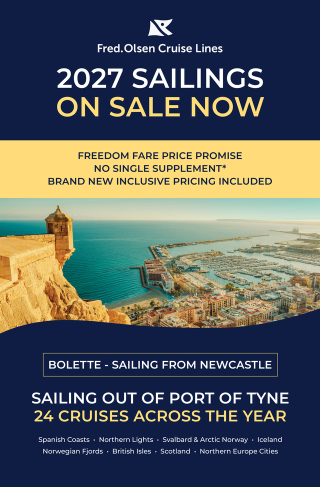 We're delighted to unveil the Fred. Olsen 2027 programme: 70 carefully curated cruises sailing between January and September, with 24 Sailings across the year from Port of Tyne.