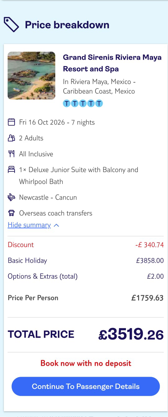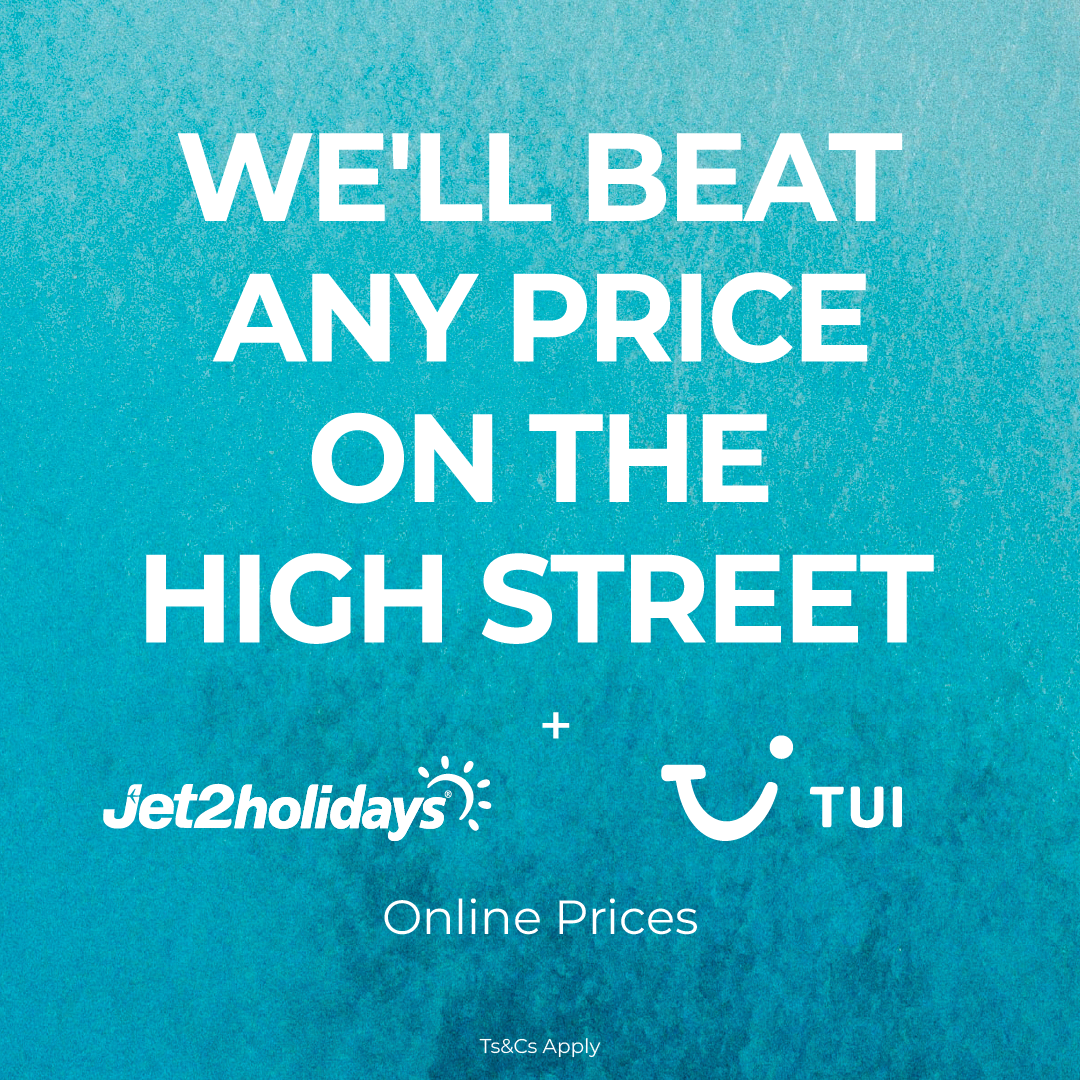 Quote must be received from a high street travel agent or Jet2holidays.com or tui.co.uk with ABTA protection. Printed or mobile quote with company logo must be provided at time of booking. Quote must be from the same day. Offer only valid on package holidays. Price and availability subject to change from receiving quote. Offer can be removed at any time. Quote must be based on an exact match holiday. Offer ends 00.00am 1st March 2026.