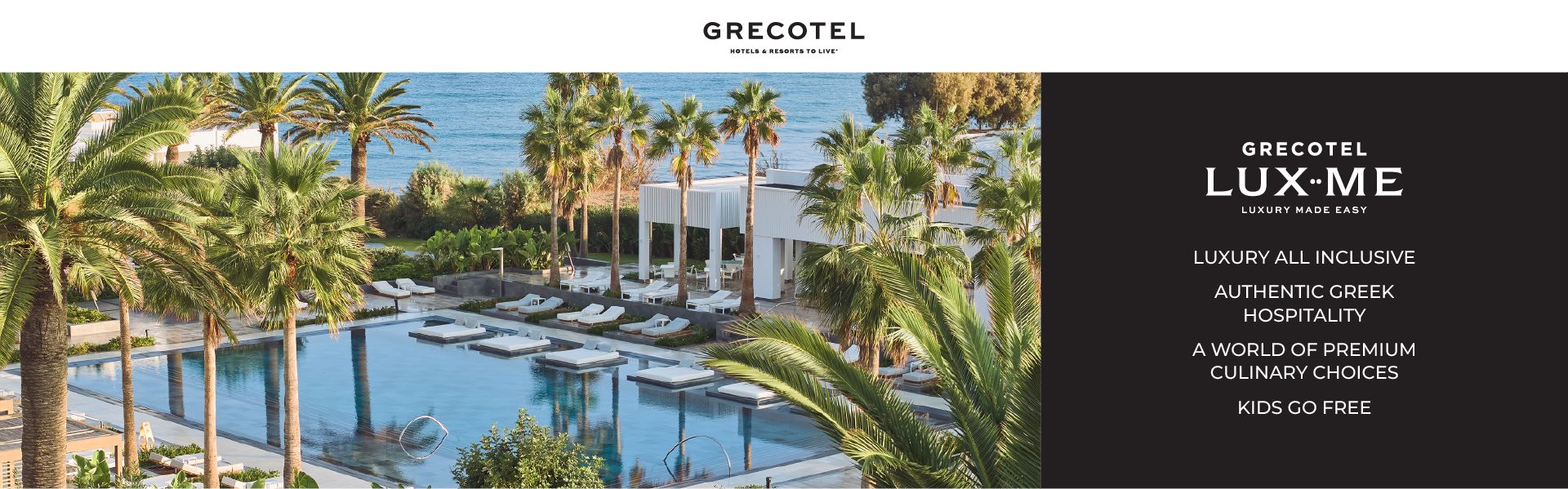 LUXME®, meaning Luxury Made Easy®, is Grecotel’s signature concept—an invitation to experience luxury that feels effortless. From Crete and Corfu to Kos, Rhodes, and Peloponnese, each resort celebrates its own character while sharing the same essence: a life lived gracefully by the water, enriched by heartfelt service and extraordinary culinary experiences included.